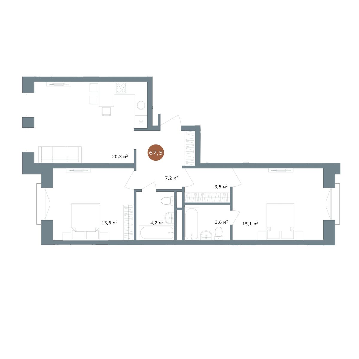 3-комнатная, 67.5 м², № 71