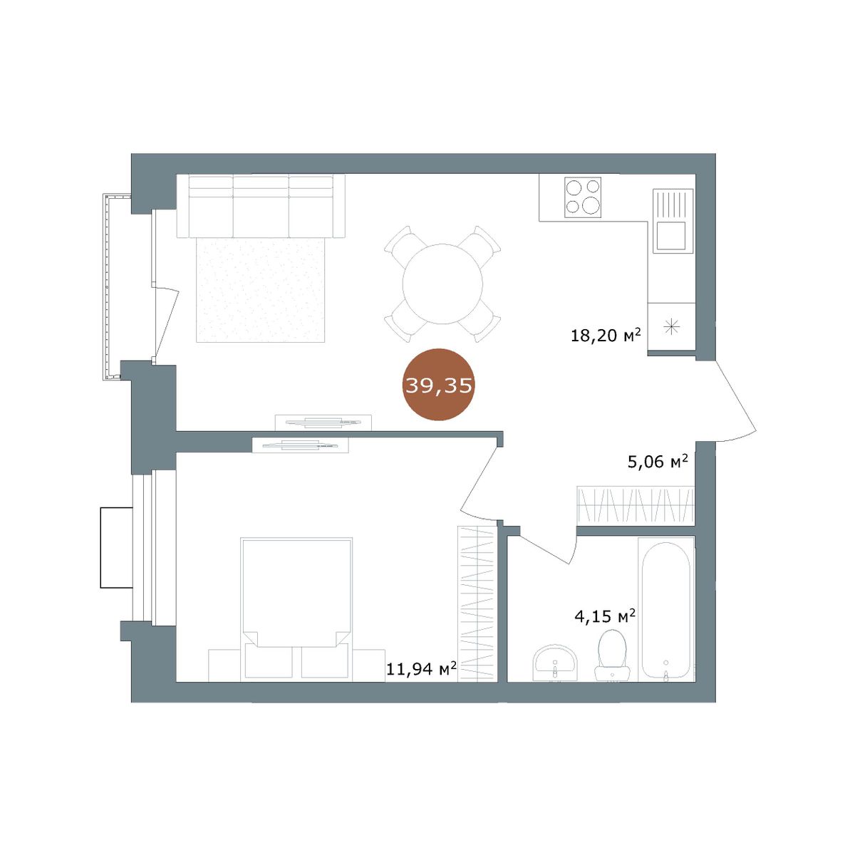 39.35 м²