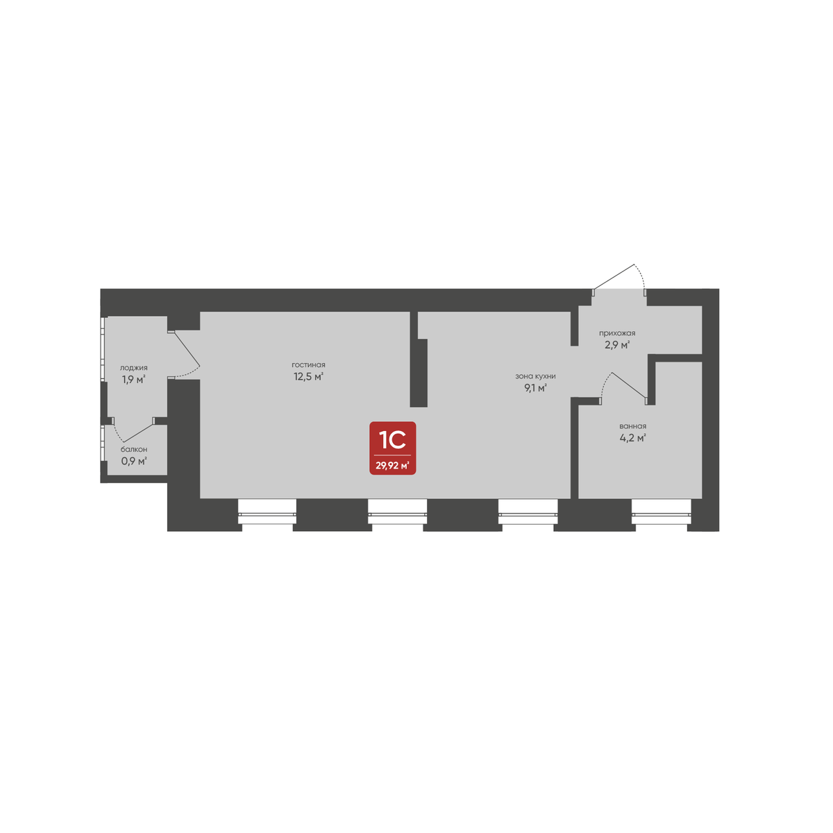 Студия, 29.92 м², № 125