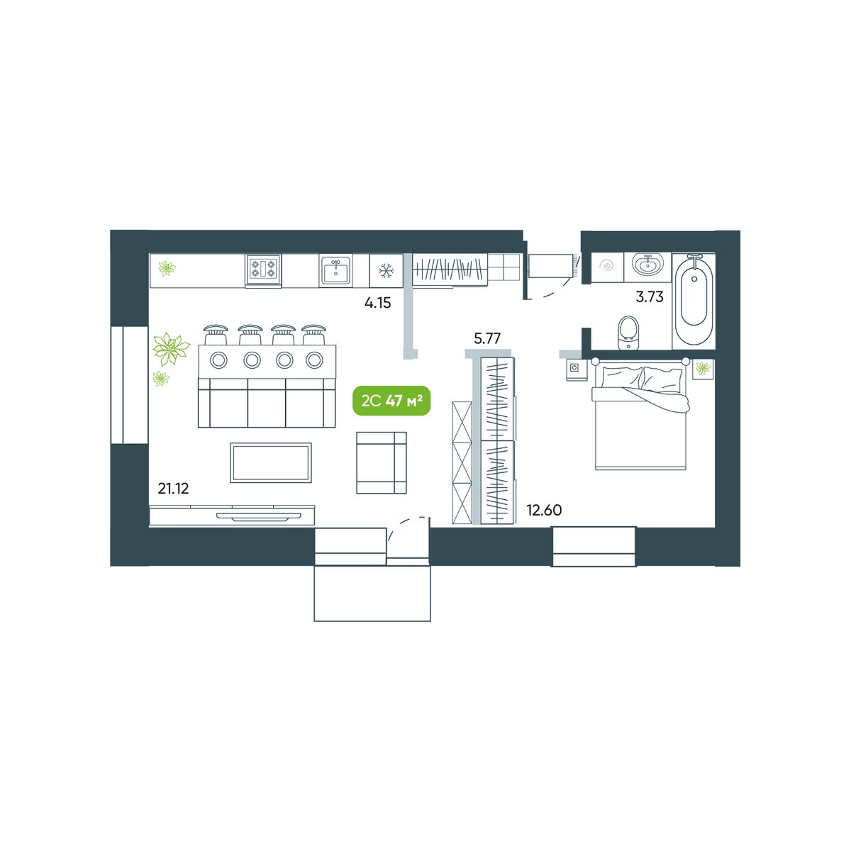 2-ΠΊΠΎΠΌΠ½Π°ΡΠ½Π°Ρ, 47.37 ΠΌΒ², β 22