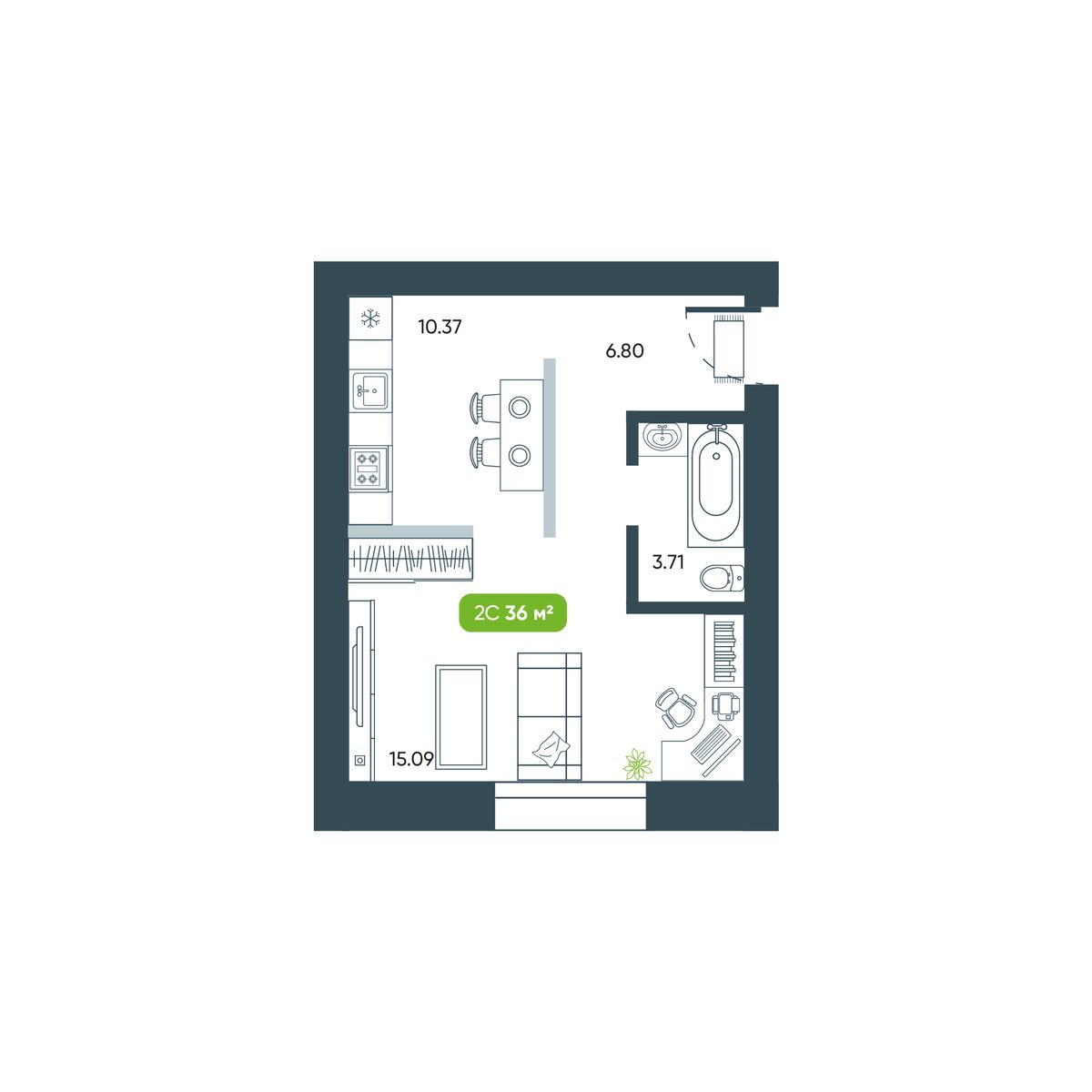 1-ΠΊΠΎΠΌΠ½Π°ΡΠ½Π°Ρ, 35.97 ΠΌΒ², β 30