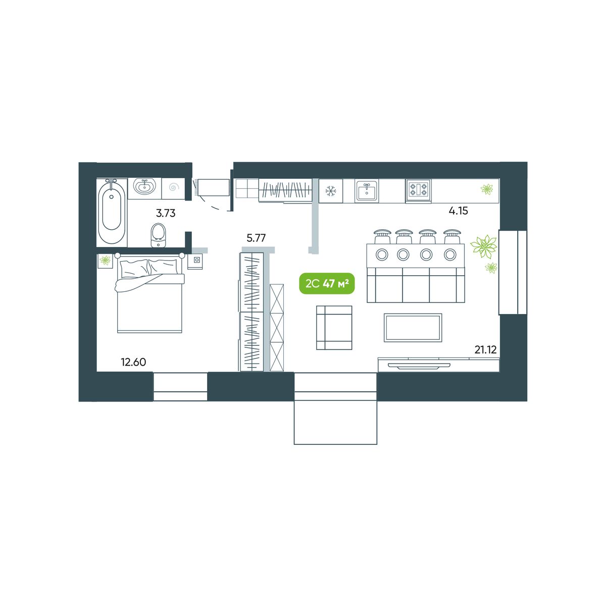2-ΠΊΠΎΠΌΠ½Π°ΡΠ½Π°Ρ, 47.37 ΠΌΒ², β 35