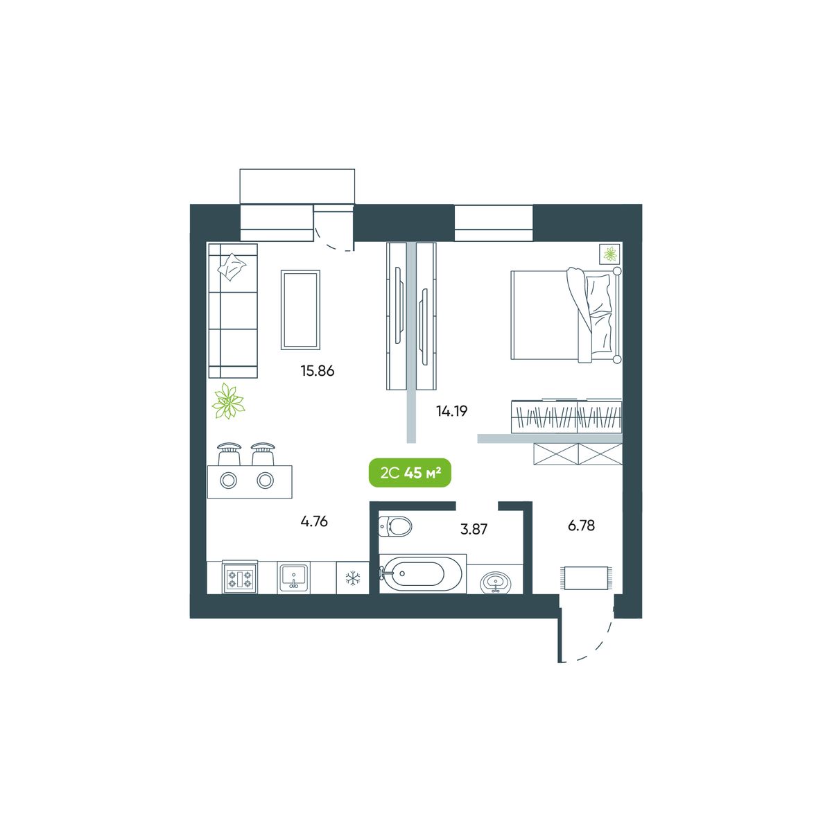 2-ΠΊΠΎΠΌΠ½Π°ΡΠ½Π°Ρ, 45.46 ΠΌΒ², β 38