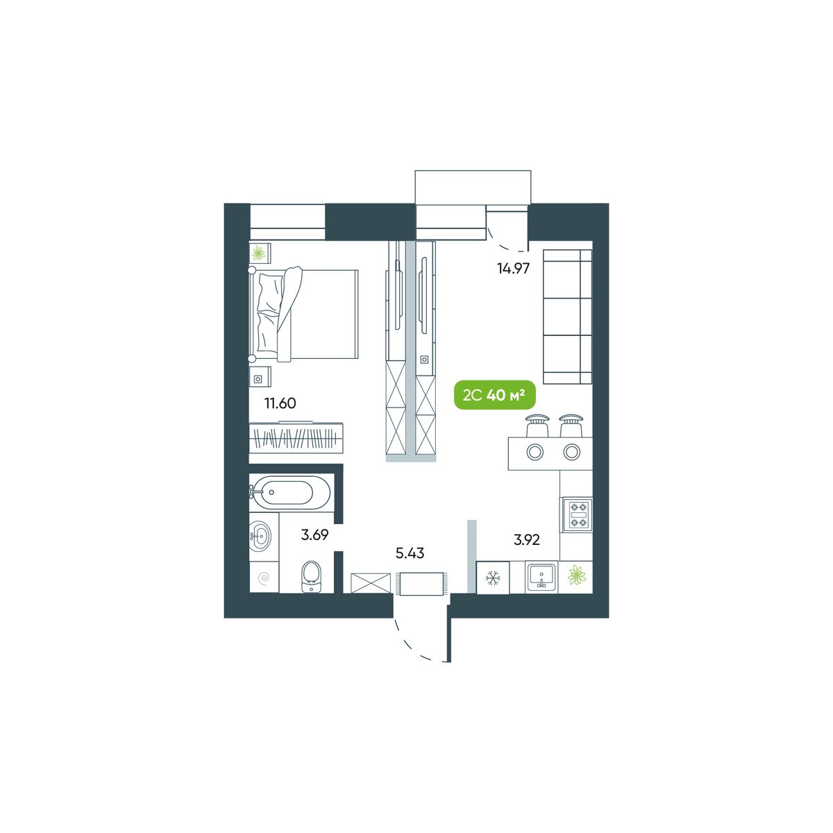 2-ΠΊΠΎΠΌΠ½Π°ΡΠ½Π°Ρ, 39.61 ΠΌΒ², β 46