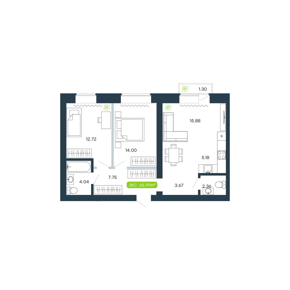 3-ΠΊΠΎΠΌΠ½Π°ΡΠ½Π°Ρ, 65.99 ΠΌΒ², β 16