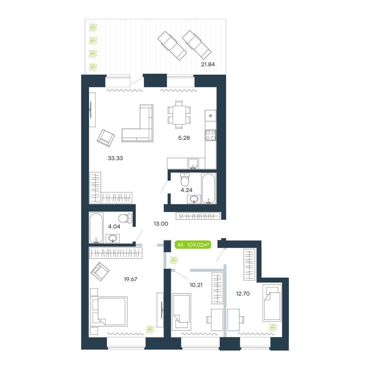 4-ΠΊΠΎΠΌΠ½Π°ΡΠ½Π°Ρ, 108.99 ΠΌΒ², β 20