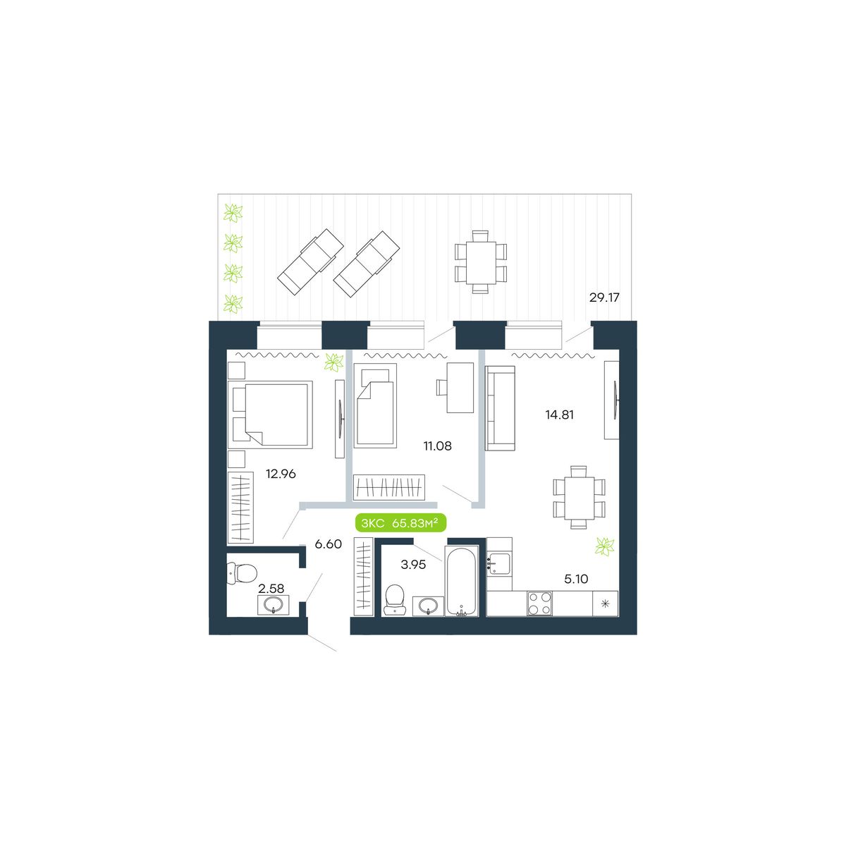 3-ΠΊΠΎΠΌΠ½Π°ΡΠ½Π°Ρ, 65.8 ΠΌΒ², β 21