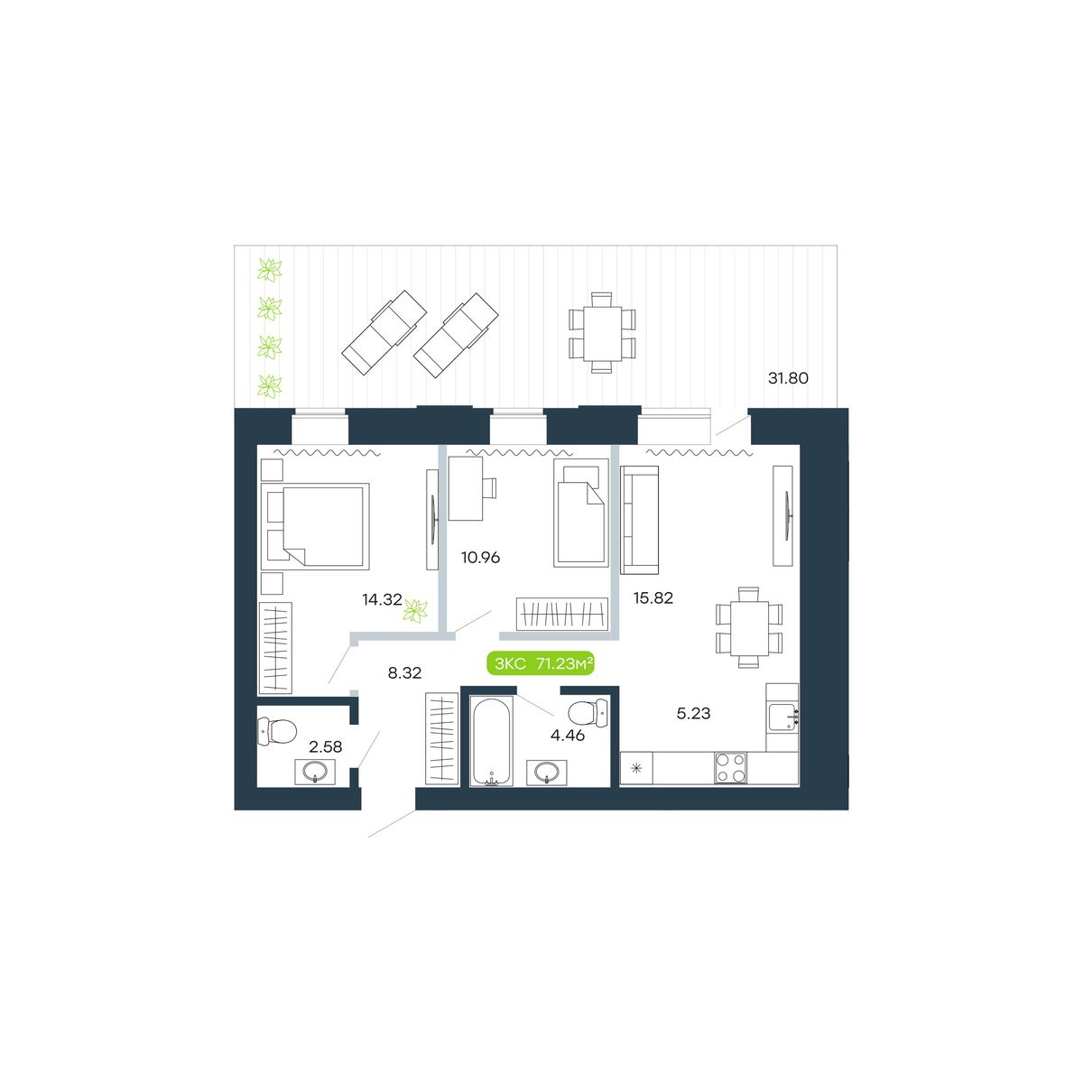 3-ΠΊΠΎΠΌΠ½Π°ΡΠ½Π°Ρ, 71.17 ΠΌΒ², β 22