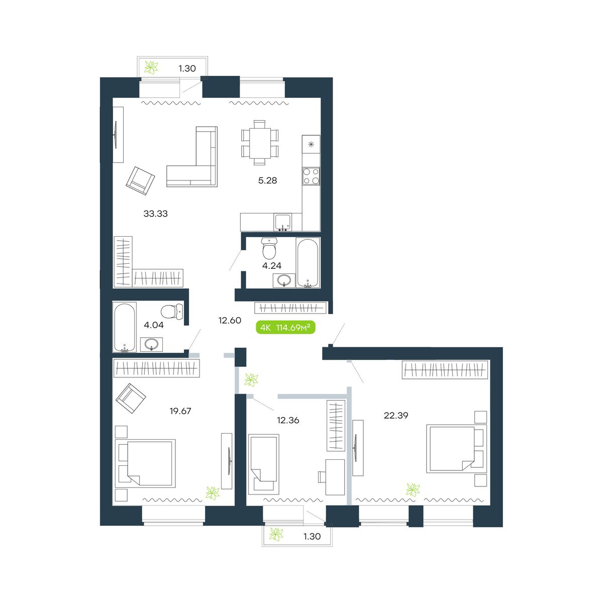 4-ΠΊΠΎΠΌΠ½Π°ΡΠ½Π°Ρ, 114.69 ΠΌΒ², β 32