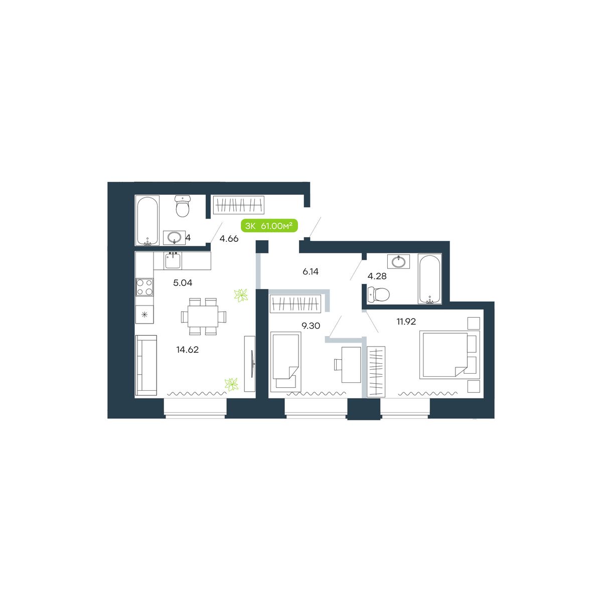 3-ΠΊΠΎΠΌΠ½Π°ΡΠ½Π°Ρ, 61 ΠΌΒ², β 36