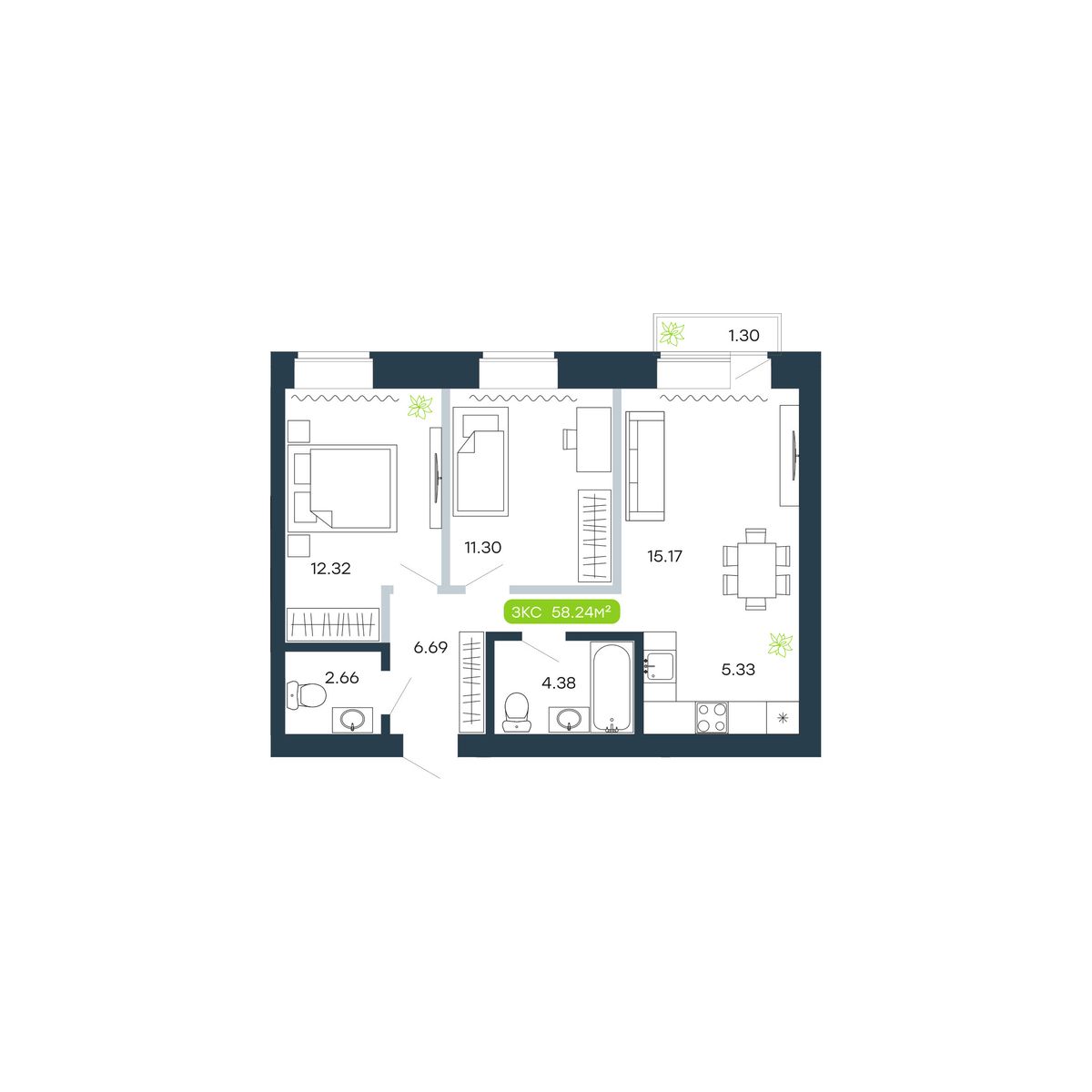 3-ΠΊΠΎΠΌΠ½Π°ΡΠ½Π°Ρ, 58.24 ΠΌΒ², β 41
