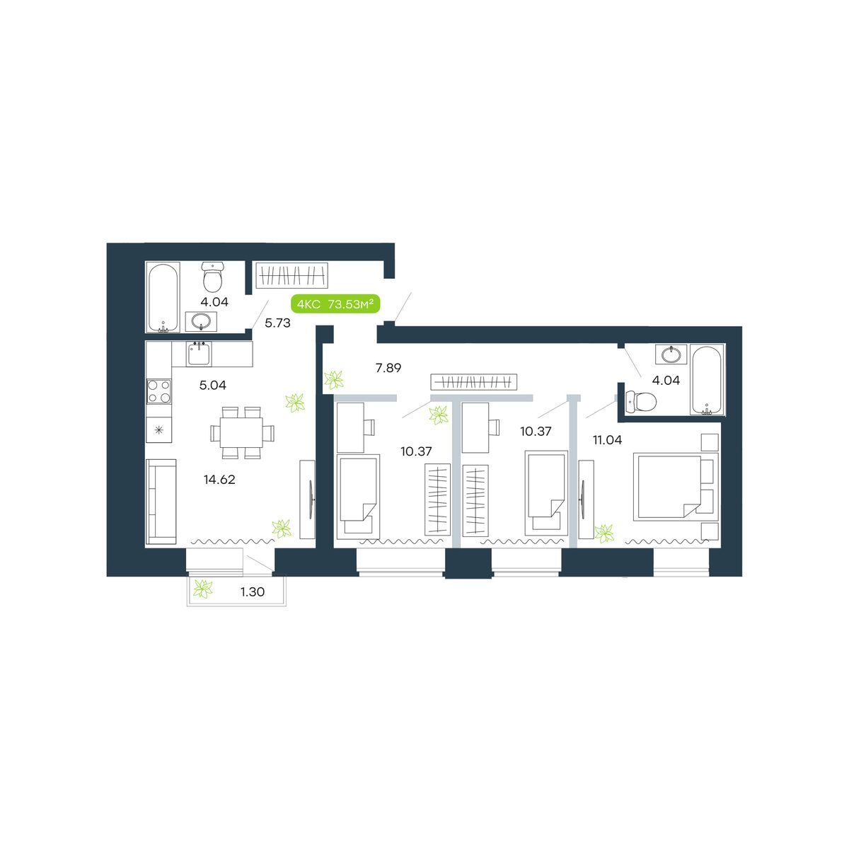 4-ΠΊΠΎΠΌΠ½Π°ΡΠ½Π°Ρ, 73.53 ΠΌΒ², β 48