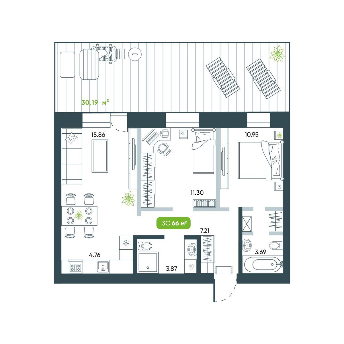 3-ΠΊΠΎΠΌΠ½Π°ΡΠ½Π°Ρ, 66.51 ΠΌΒ², β 31