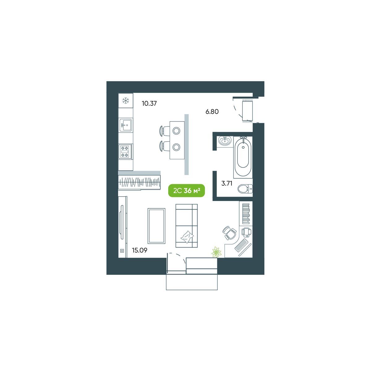 1-ΠΊΠΎΠΌΠ½Π°ΡΠ½Π°Ρ, 36.42 ΠΌΒ², β 51