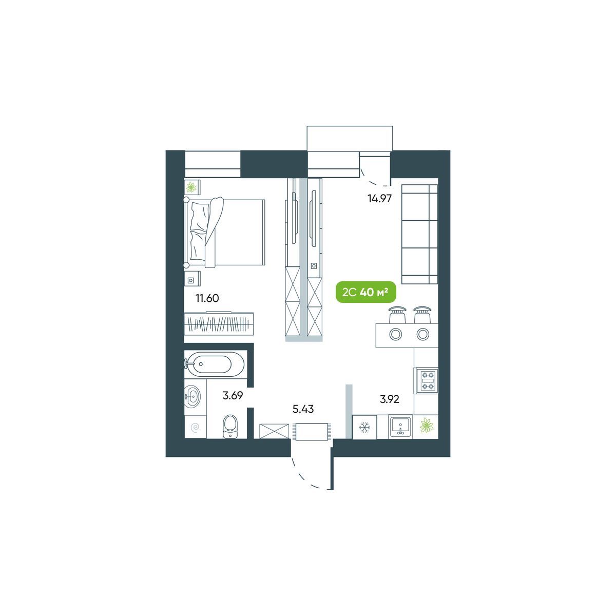 2-ΠΊΠΎΠΌΠ½Π°ΡΠ½Π°Ρ, 40.27 ΠΌΒ², β 53