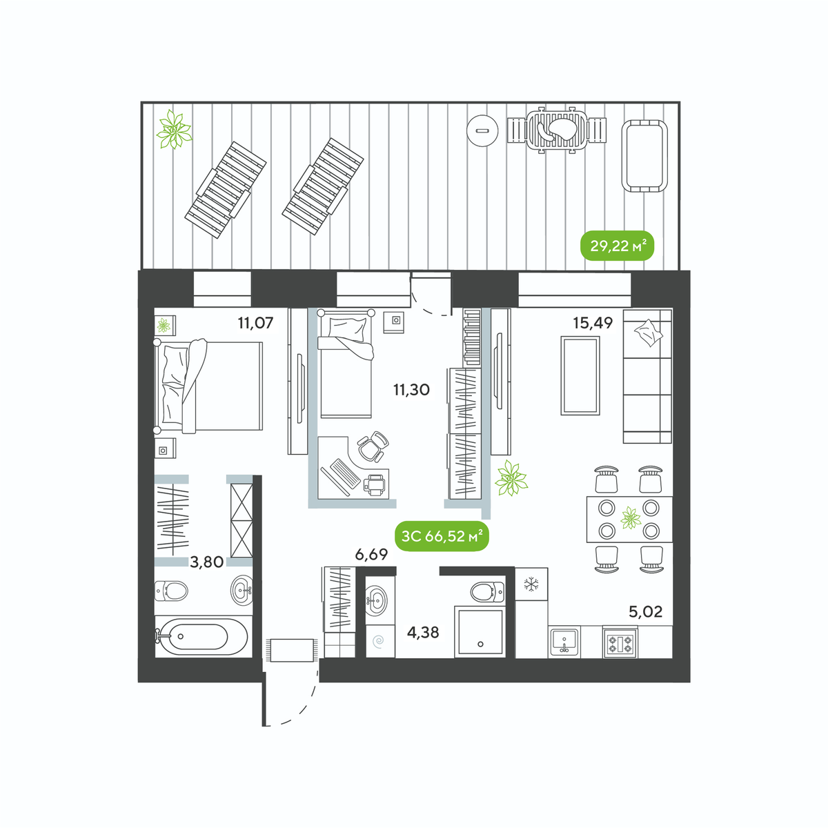 3-ΠΊΠΎΠΌΠ½Π°ΡΠ½Π°Ρ, 66.53 ΠΌΒ², β 5