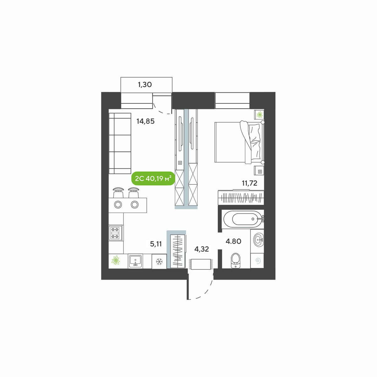 2-ΠΊΠΎΠΌΠ½Π°ΡΠ½Π°Ρ, 40.19 ΠΌΒ², β 11