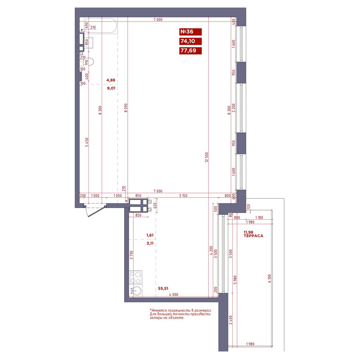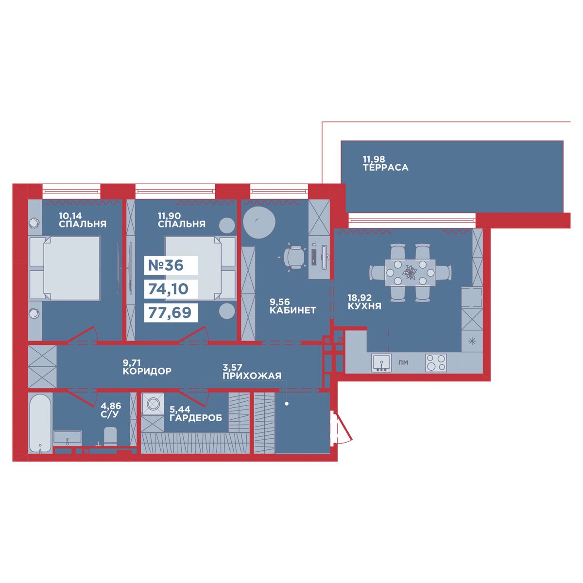 1-комнатная, 77.69 м², № 36