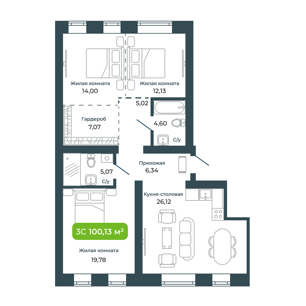 3-ΠΊΠΎΠΌΠ½Π°ΡΠ½Π°Ρ, 100.13 ΠΌΒ², β 20