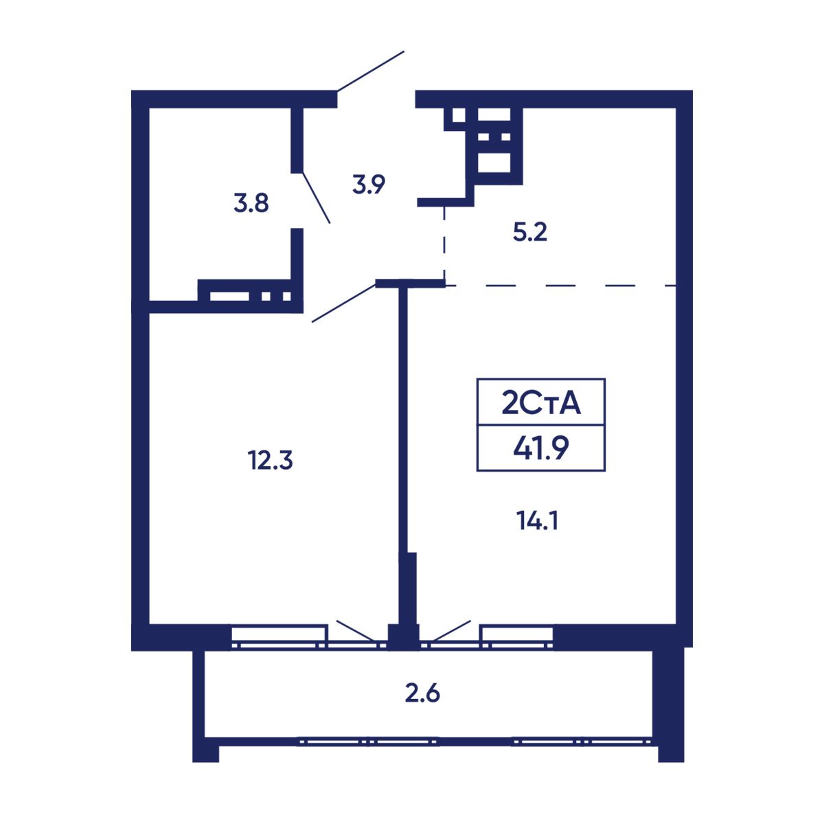 2-ΠΊΠΎΠΌΠ½Π°ΡΠ½Π°Ρ, 41.9 ΠΌΒ², β 820