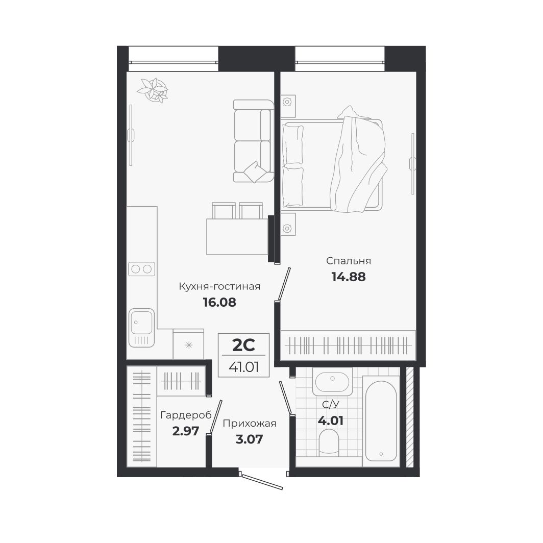2-комнатная, 41.01 м², № 908