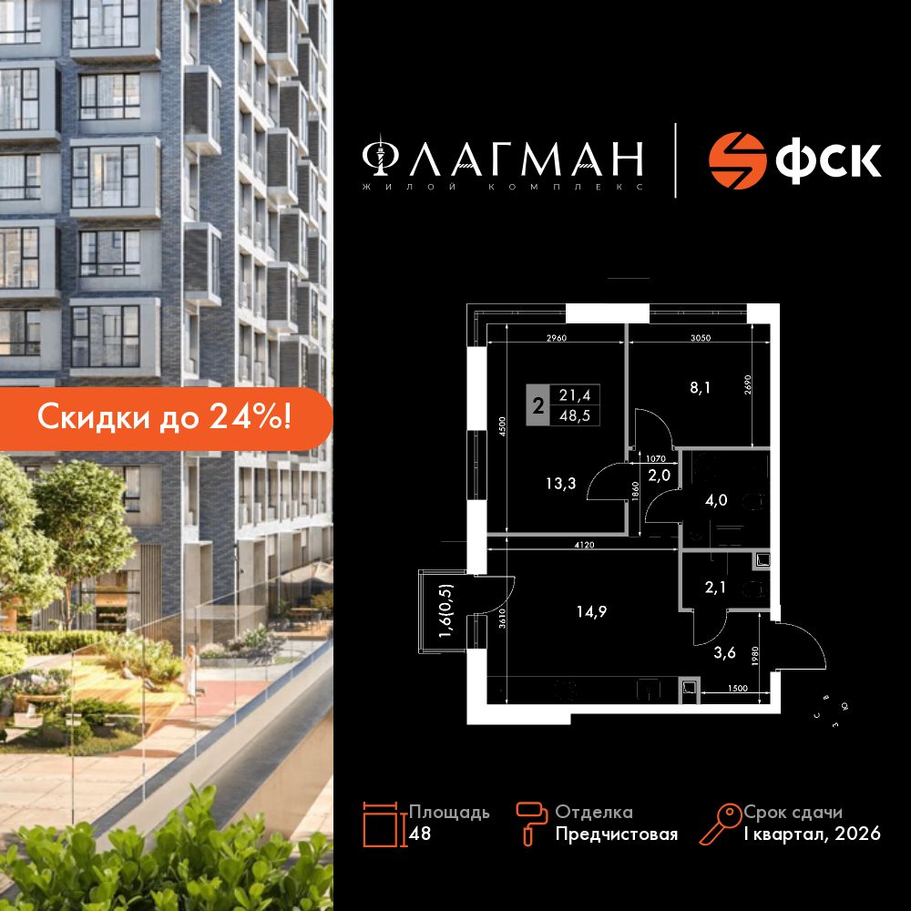 2-комнатная, 48 м², № 438