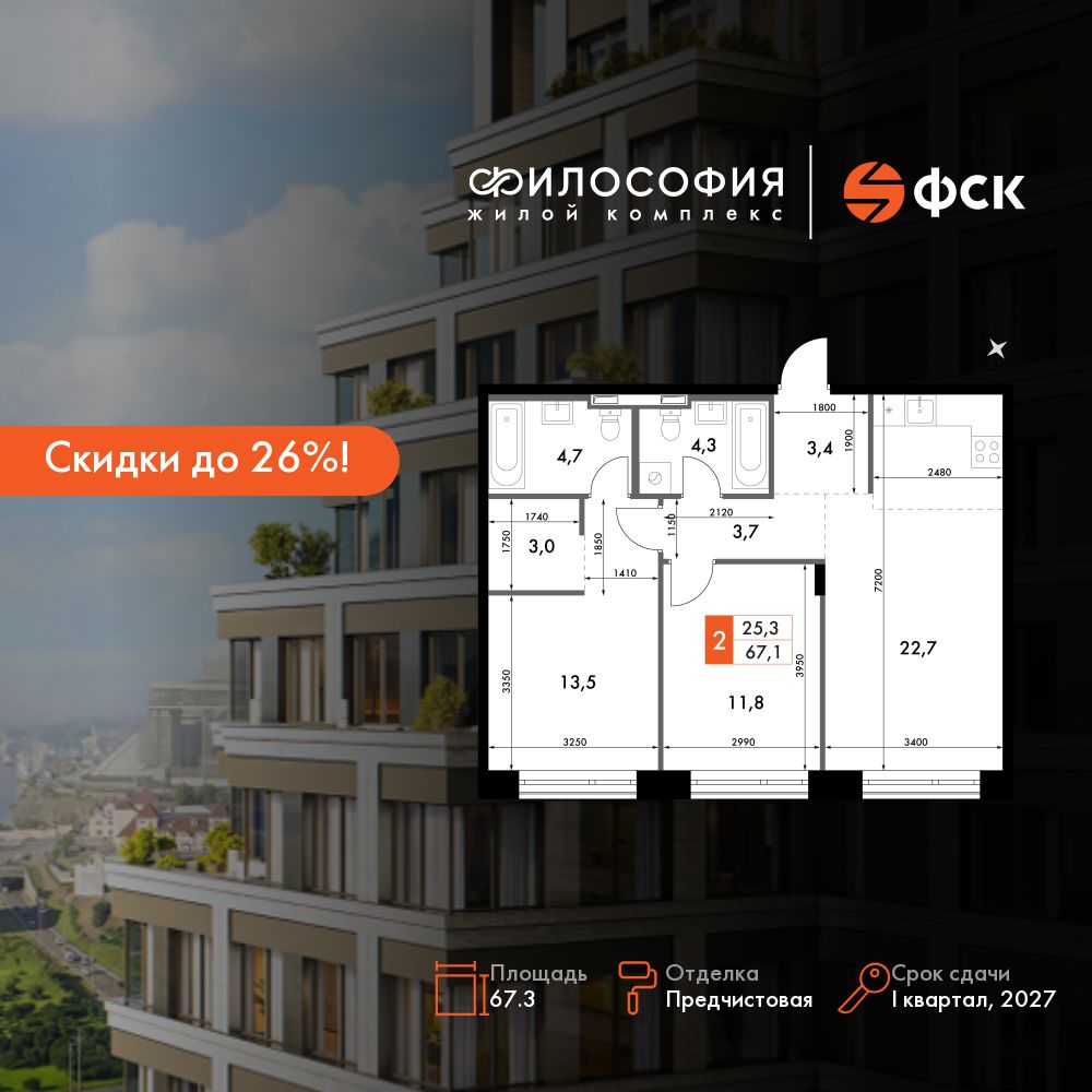 67.3 м²