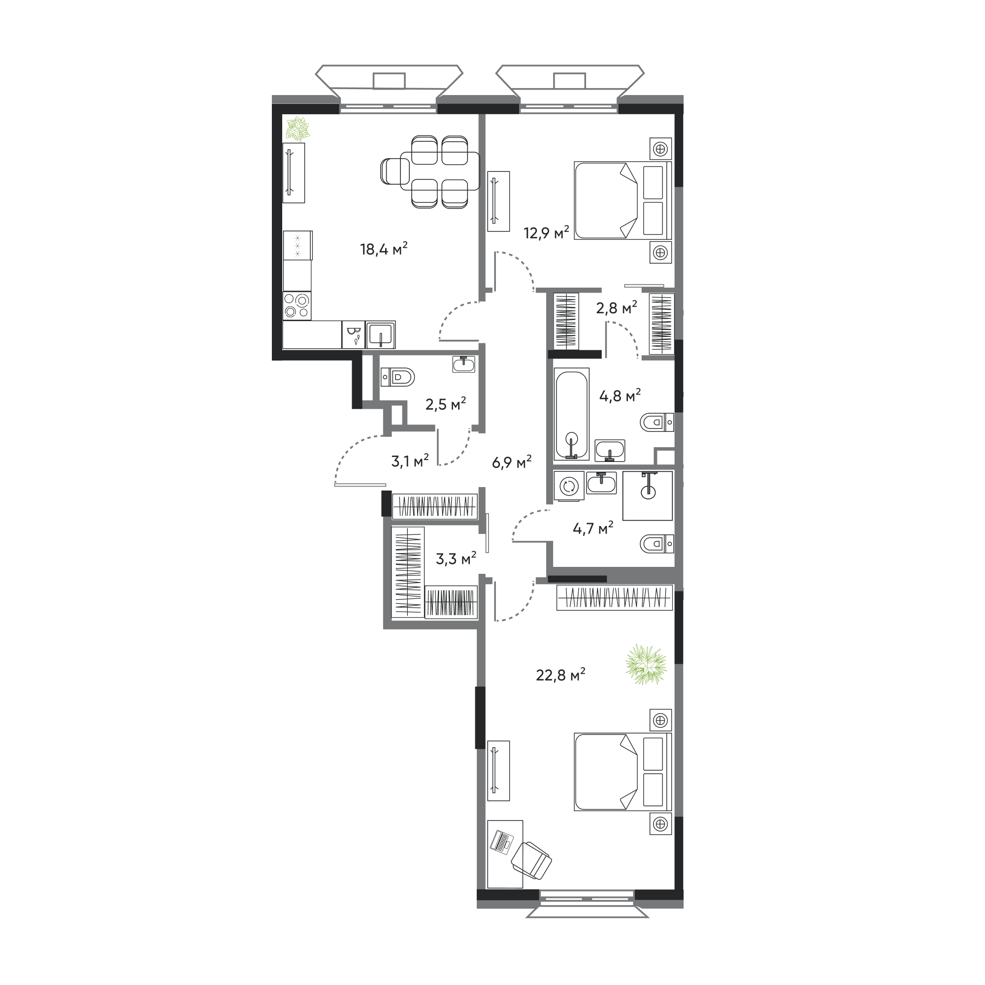 2-комнатная, 82.2 м², № 1