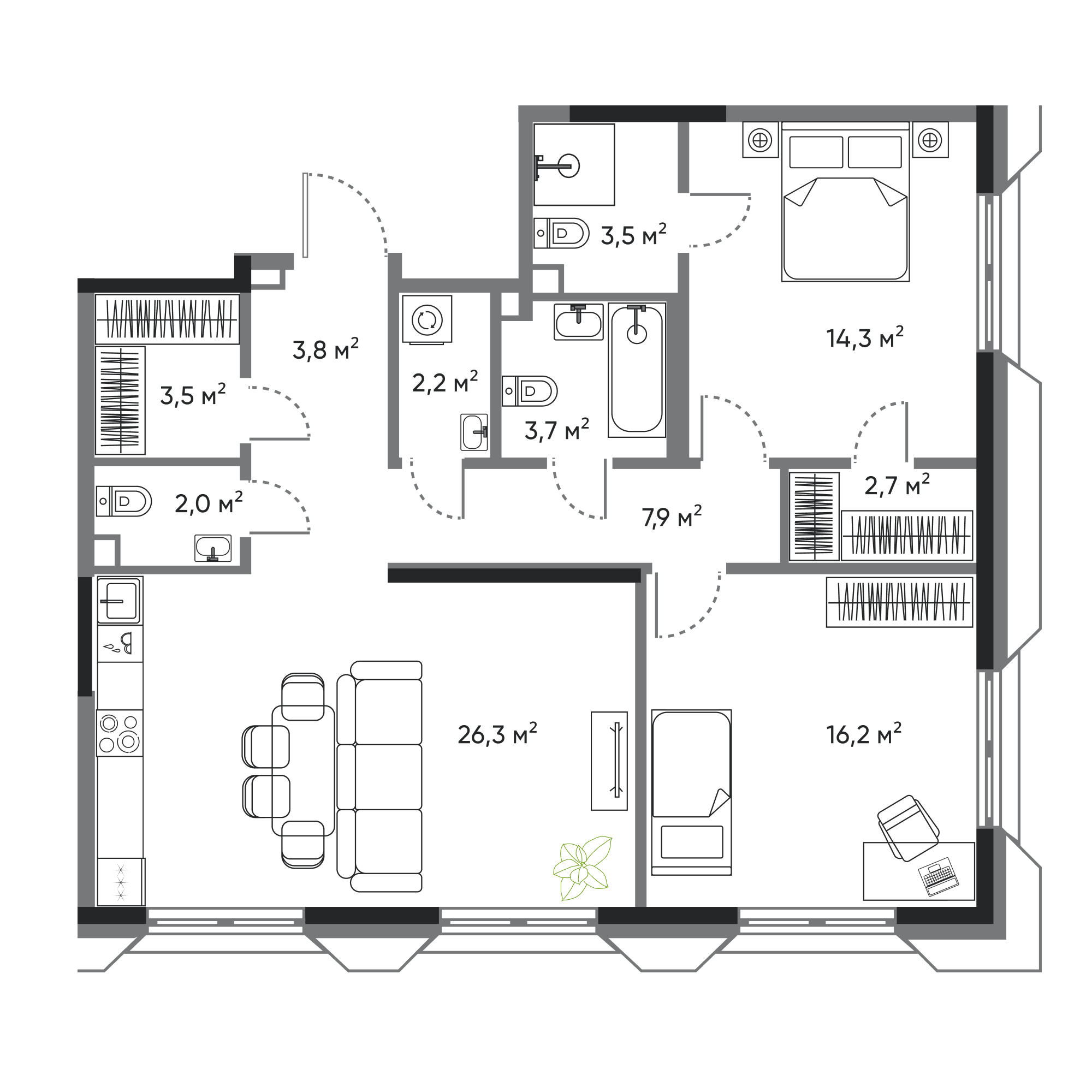 2-комнатная, 86.1 м², № 29