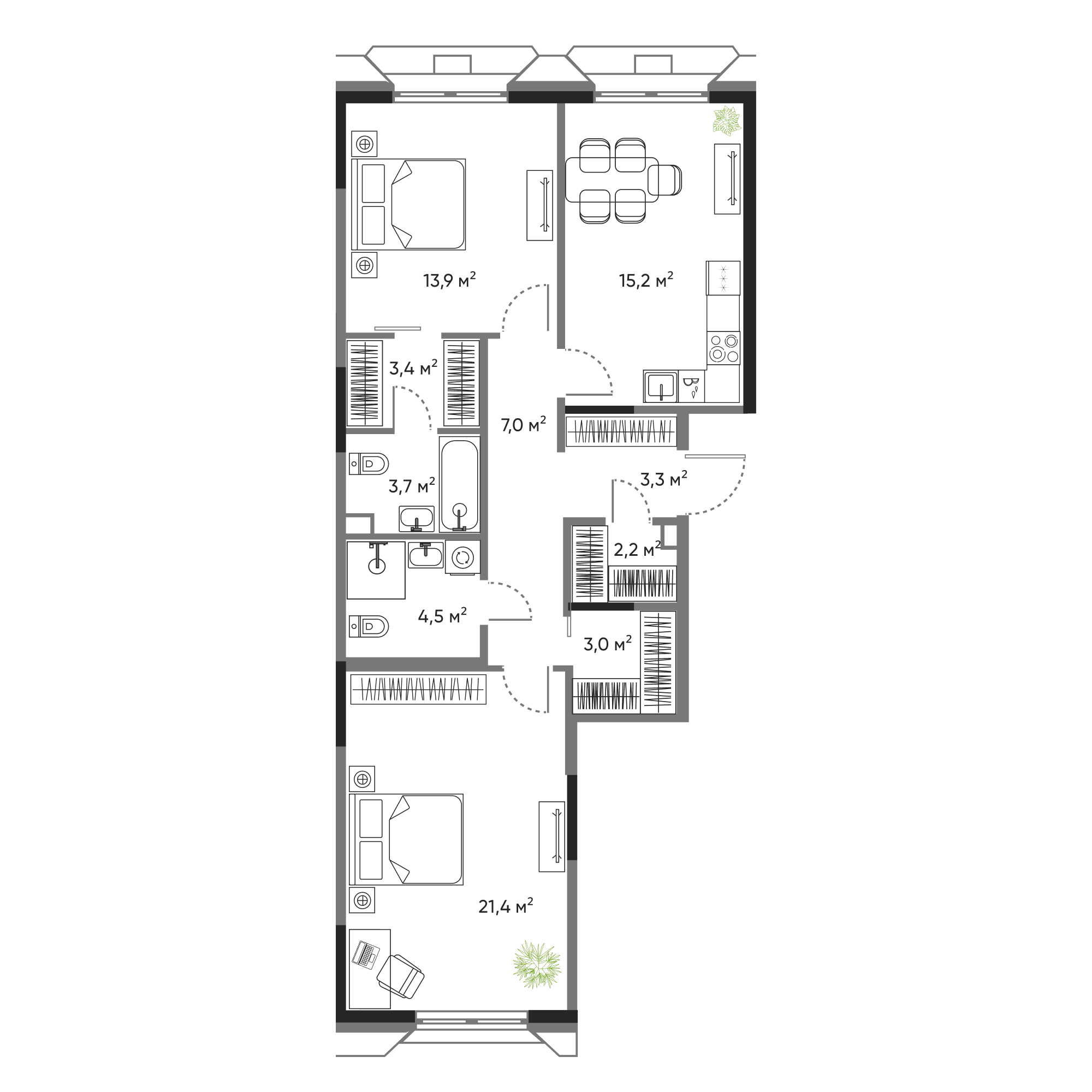 2-комнатная, 77.6 м², № 30