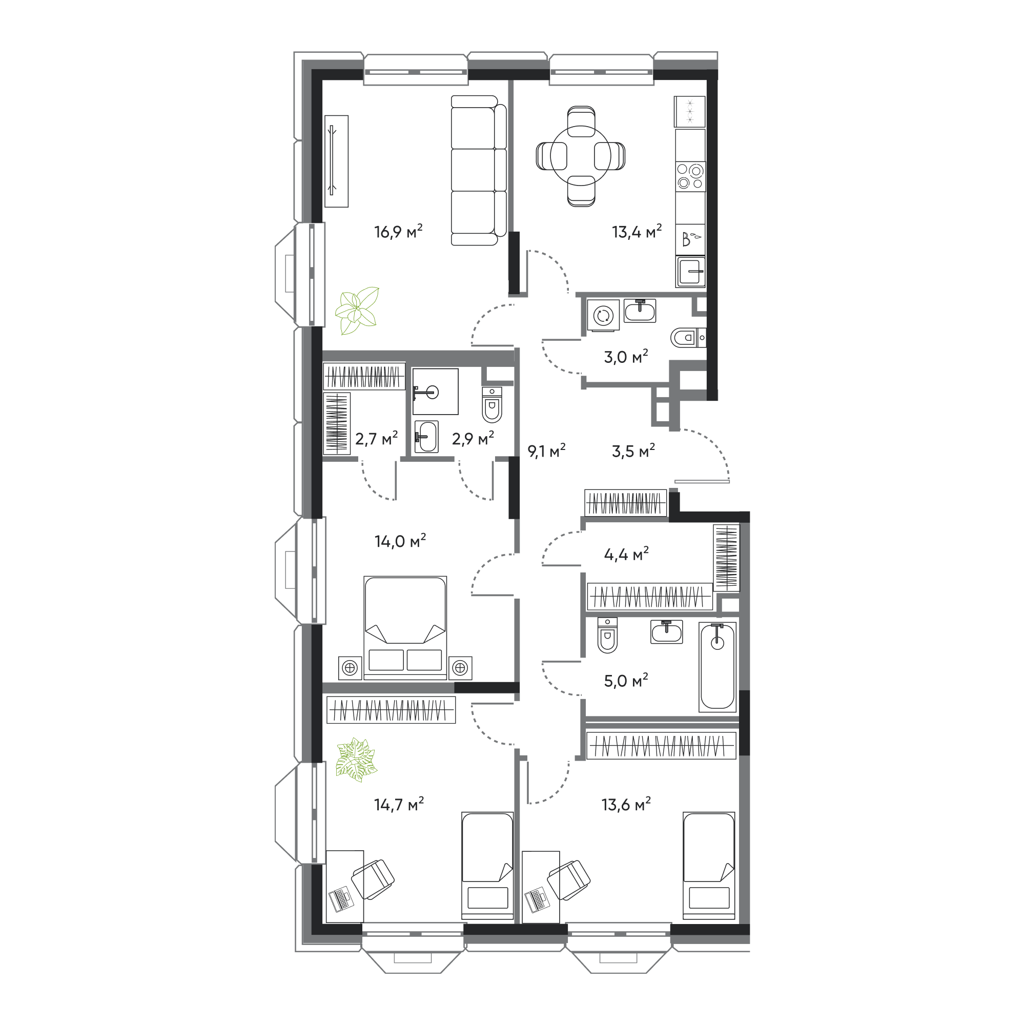 4-комнатная, 103.2 м², № 67