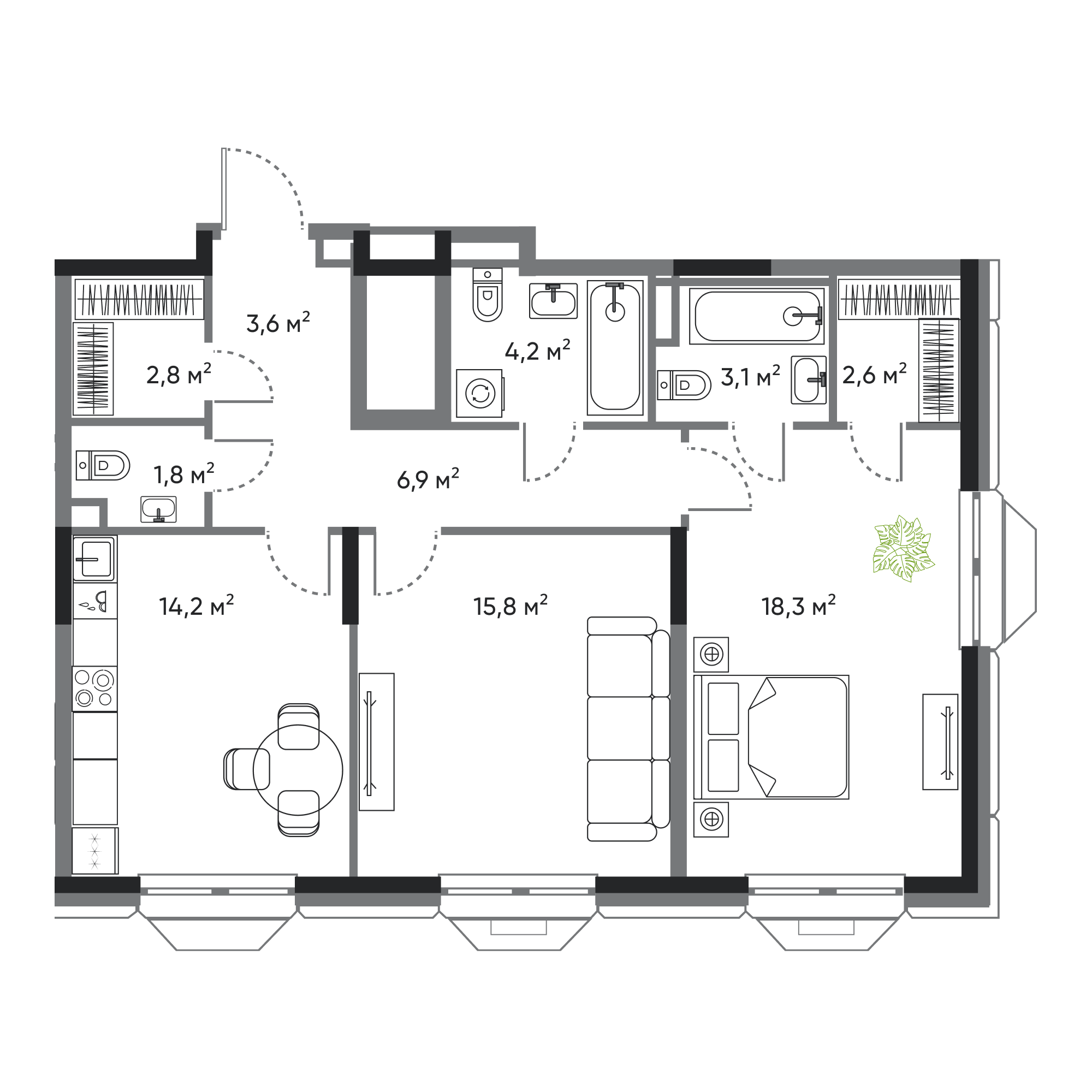 2-комнатная, 73.3 м², № 85
