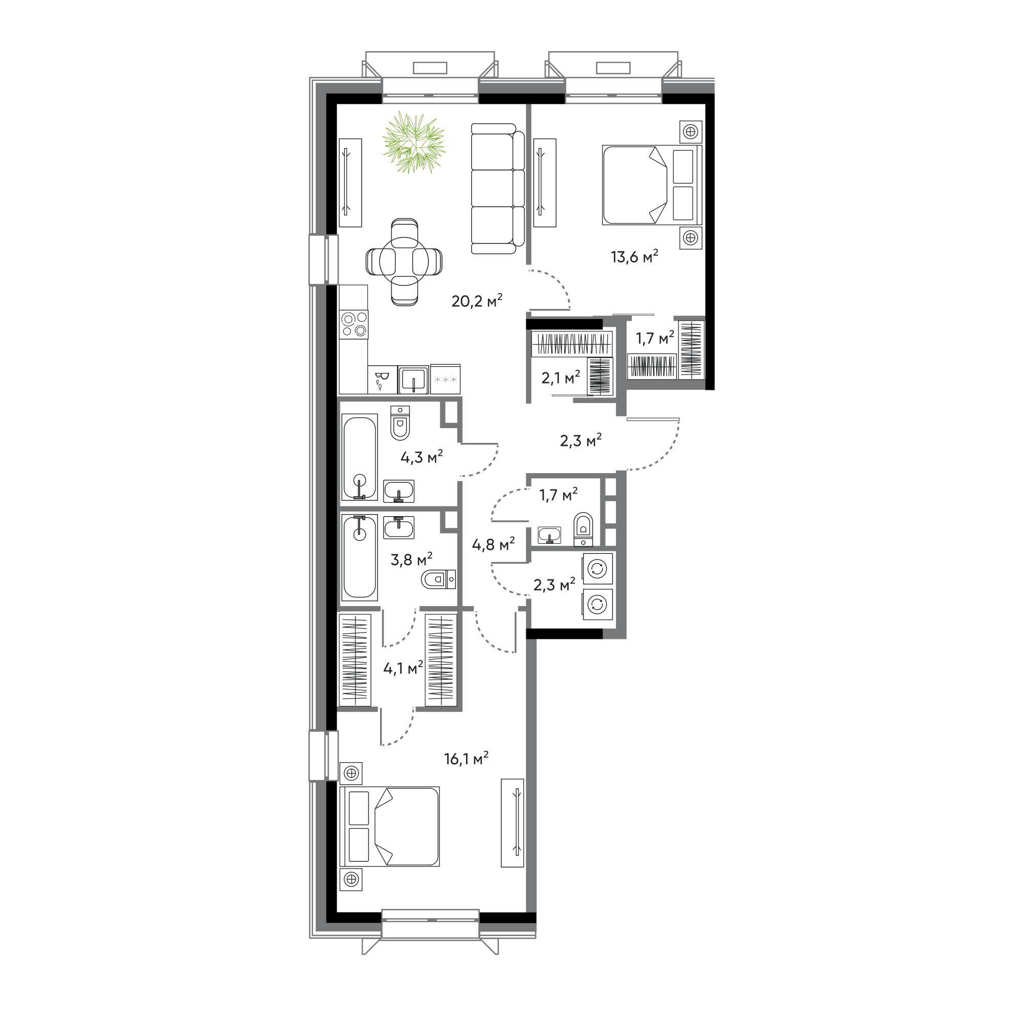 2-комнатная, 77 м², № 94
