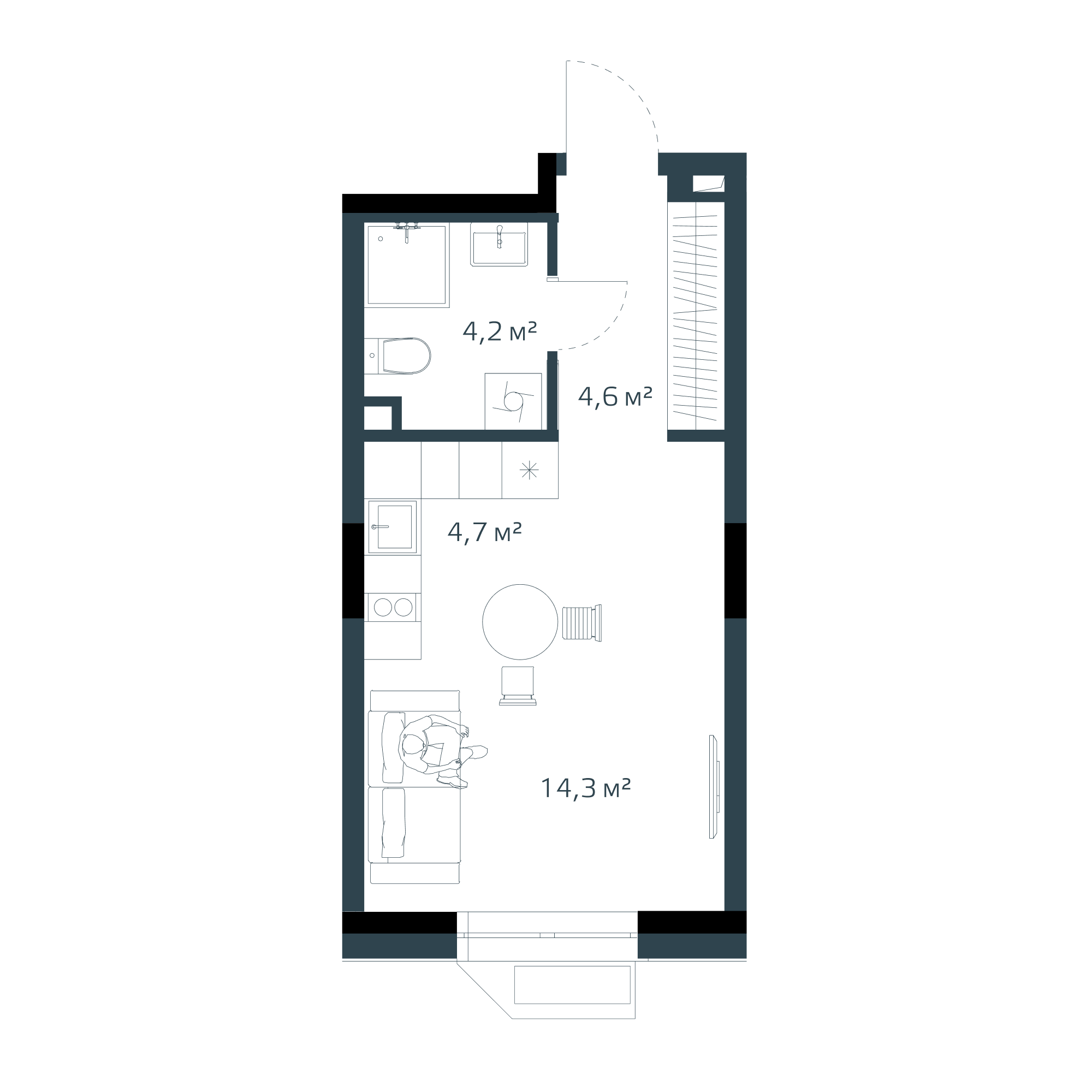 Студия, 27.8 м², № 168