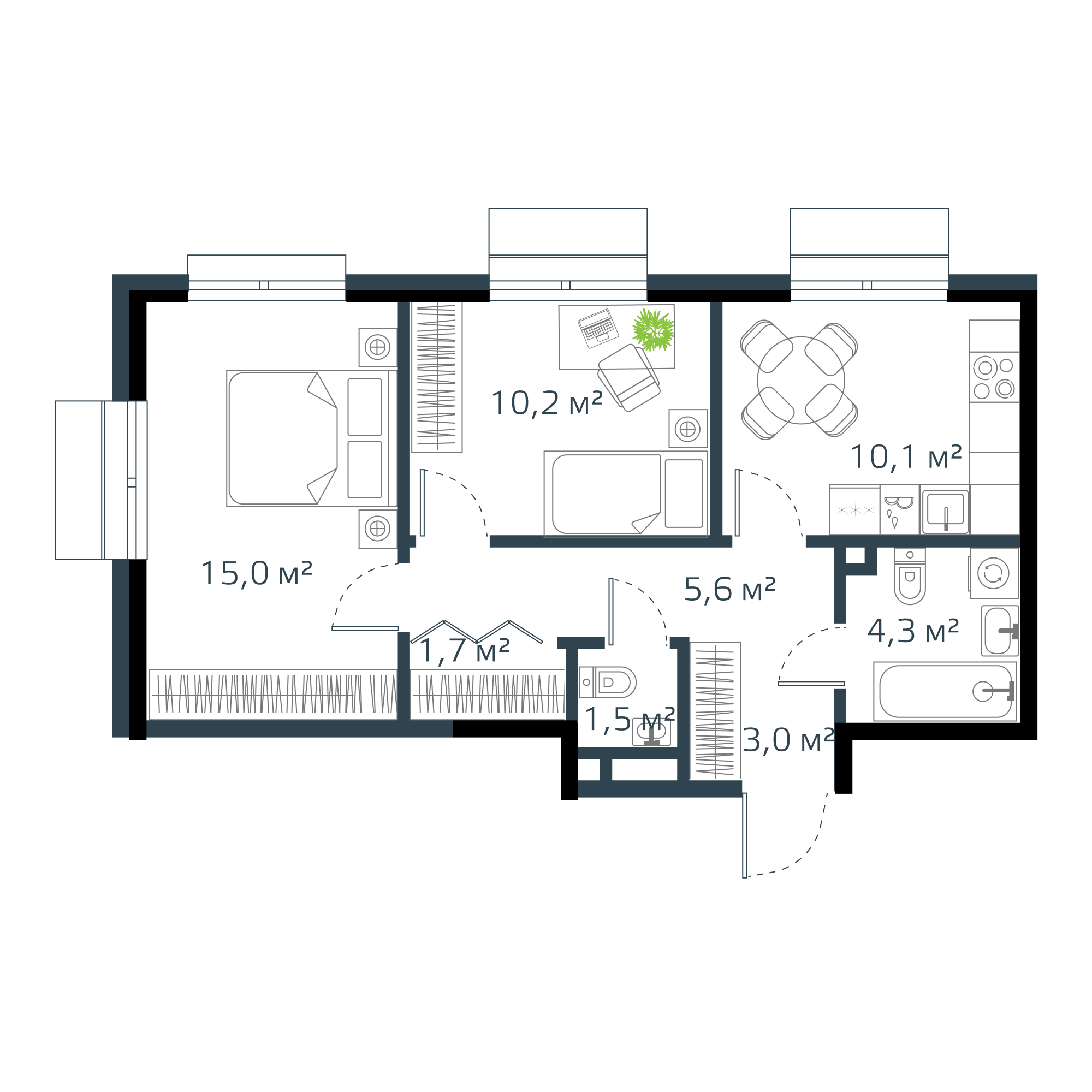 2-комнатная, 51.4 м², № 61