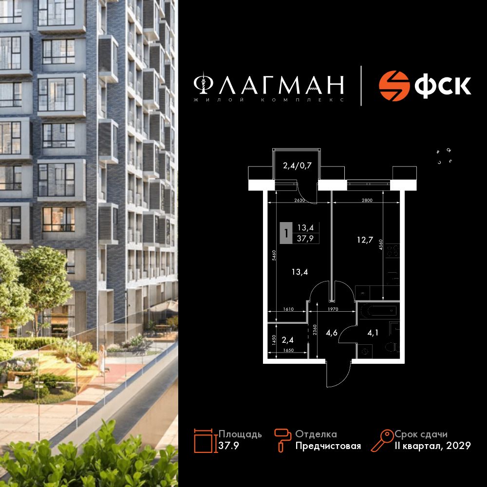 1-комнатная, 37.9 м², № 218