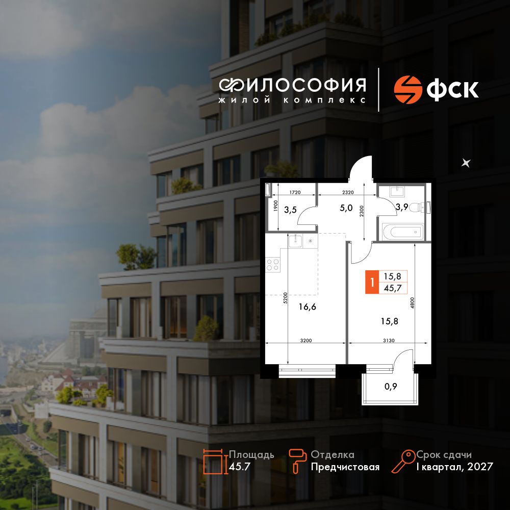 45.7 м²