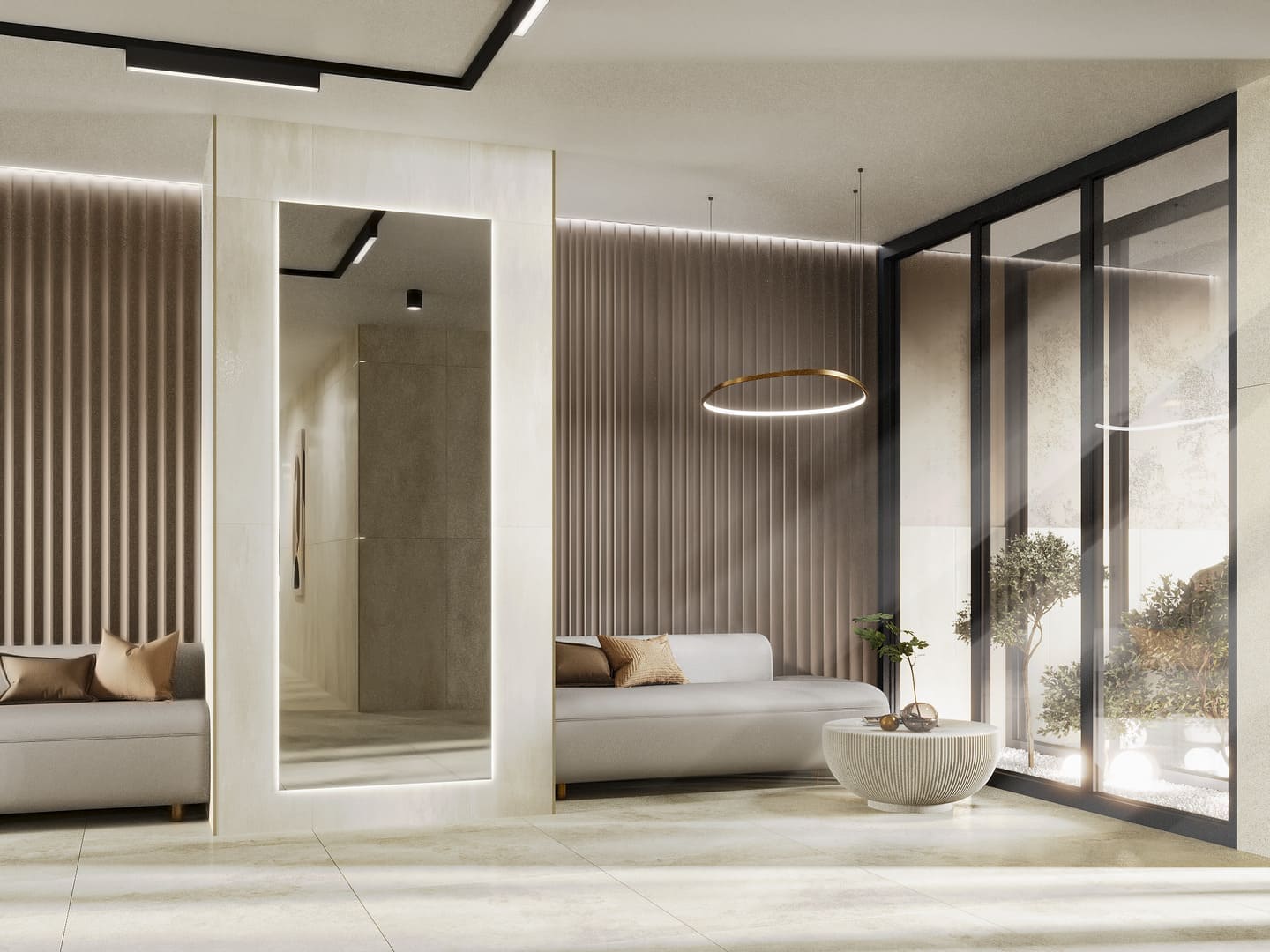 Стильные входные группы с дизайнерской отделкой помещений общего пользования выполнены из высококачественных материалов и включают в себя: