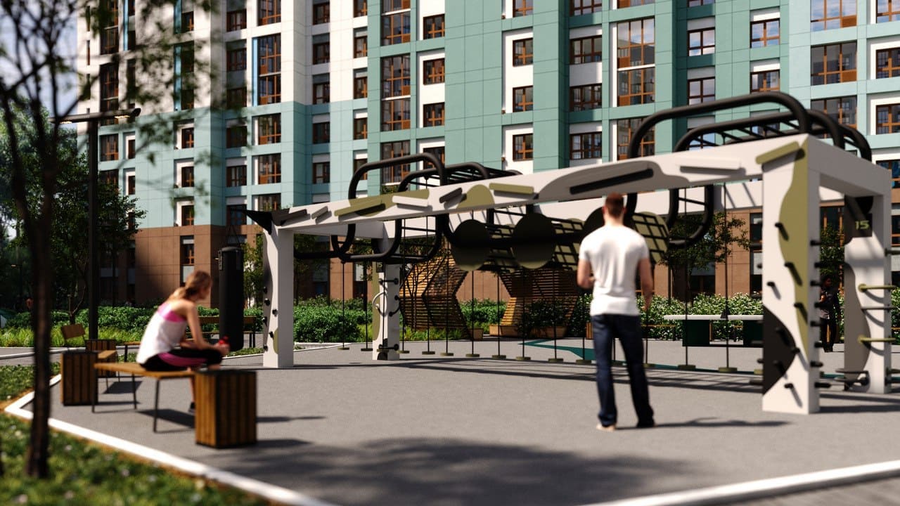 - Воркаут зоны оснащенные уличными тренажерами, турниками, брусьями;
