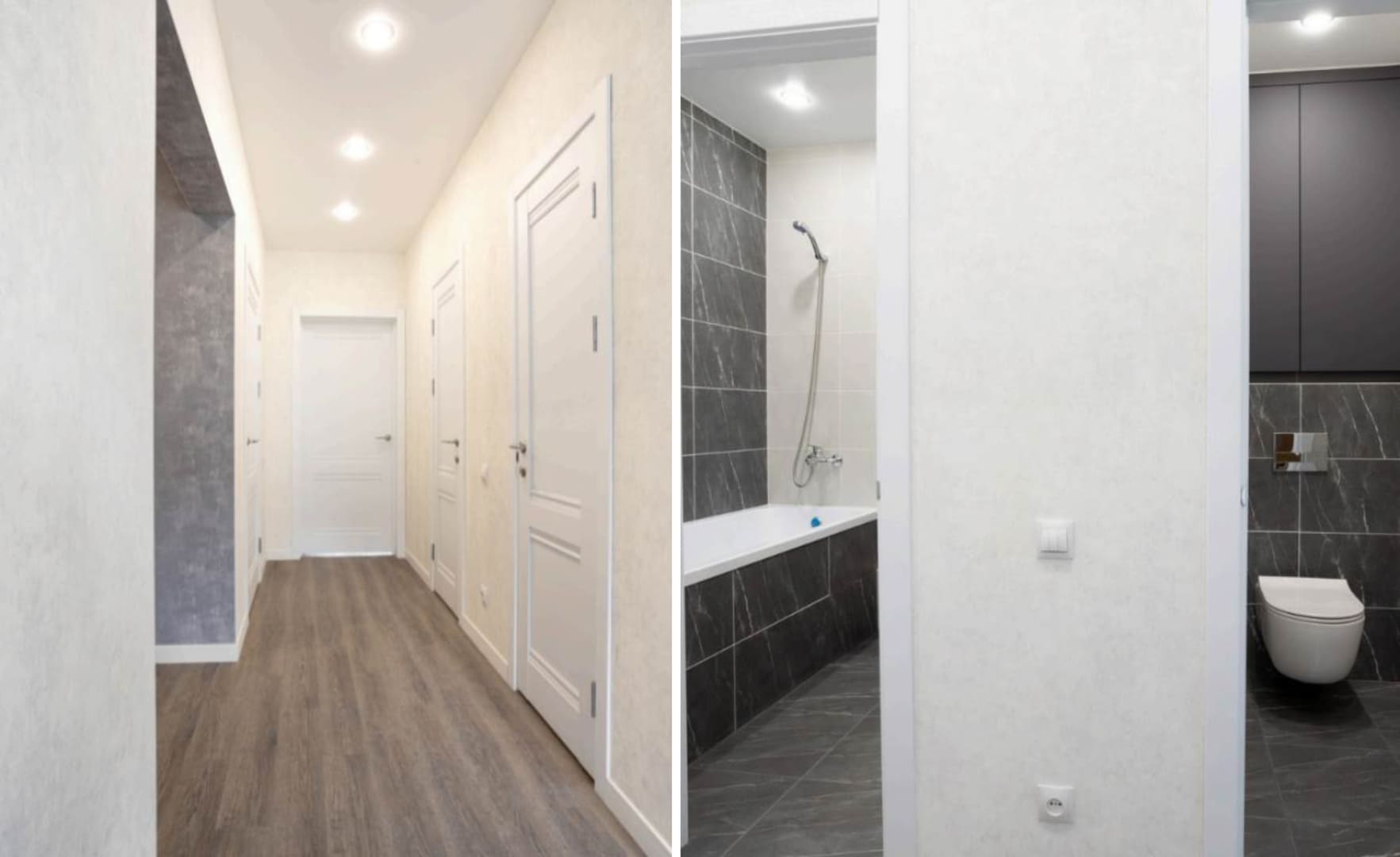 - Ровно шпаклеванные и оклеенные обоями стены;